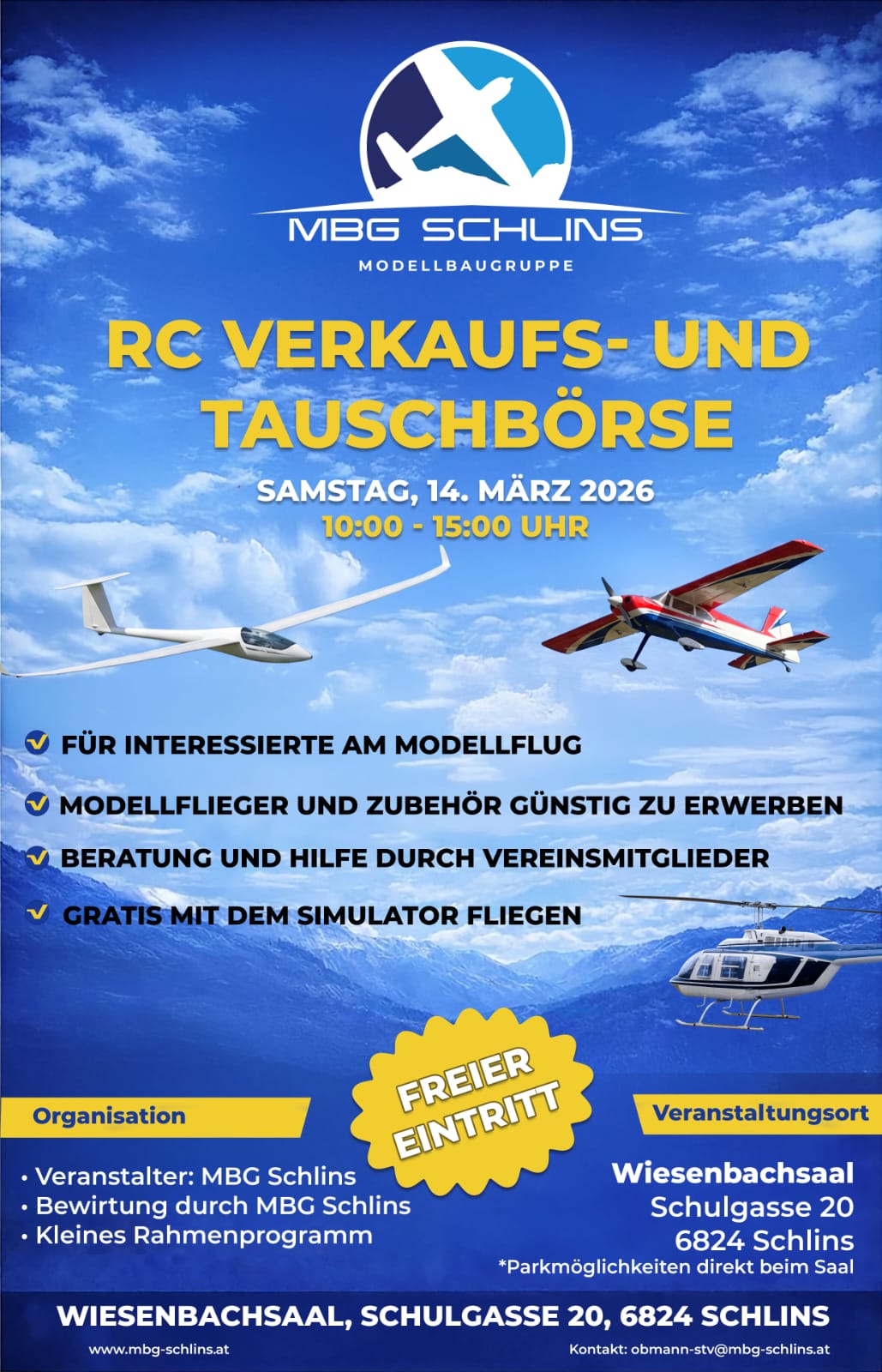Wir laden alle recht herzlich zu uns ein, sei es nur aus Interesse am Modellflugsport oder für Fragen rundum dieses Hobby.
